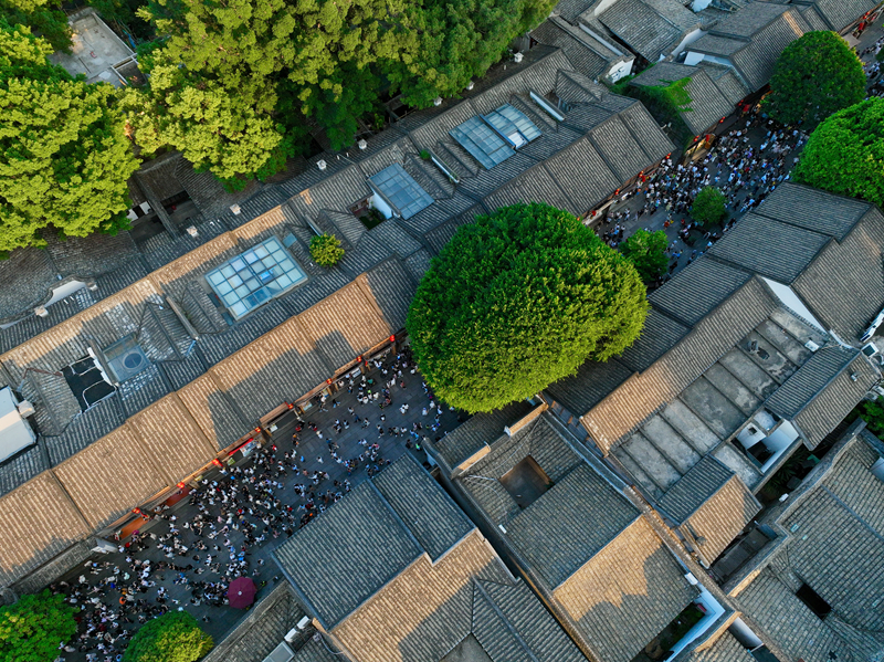 10月2日,福州三坊七巷內(nèi)游人如織(無人機照片)。