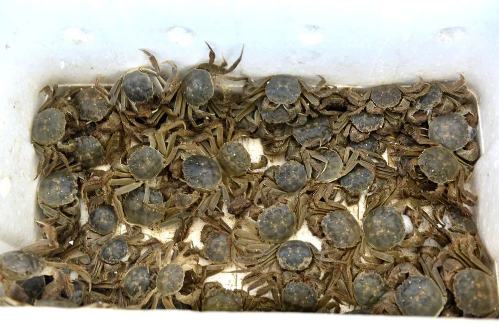 據(jù)介紹,遼寧毛蟹肉質(zhì)鮮嫩細(xì)膩,喜低溫環(huán)境,夏季生長較慢,至7月僅30克-40克,進(jìn)入秋季后迅速增重至150克。判斷螃蟹是否成熟,可觀察其腿部:腿長且硬實(shí)即表示已長成。