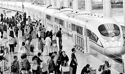 10月7日,旅客在河南洛陽龍門站乘車。新華社發(fā)