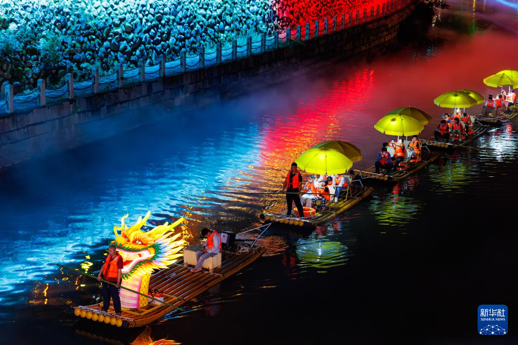 10月6日,游客在福建省長汀縣體驗(yàn)“夜游汀江”項(xiàng)目。新華社記者 李昊澤 攝