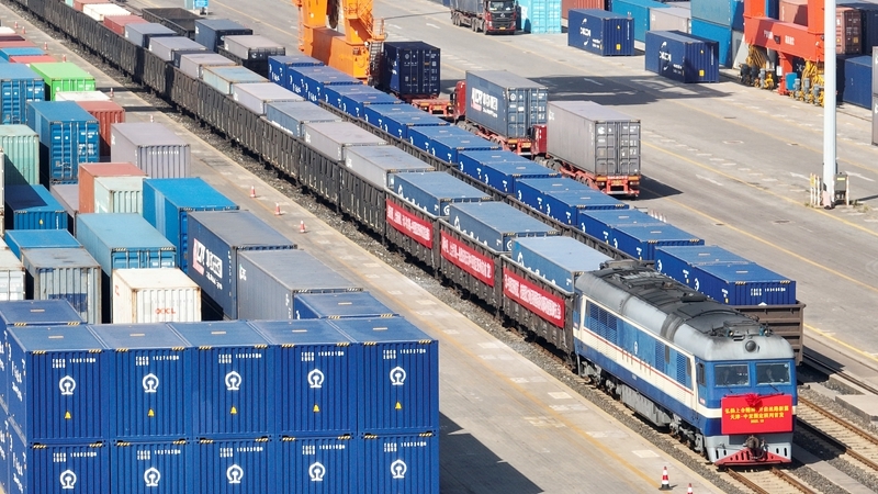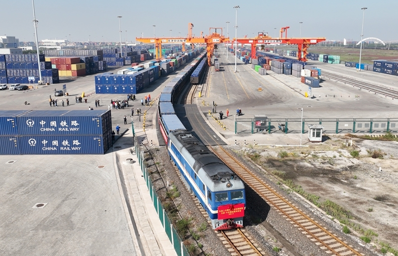 10月13日,伴隨嘹亮悠長的鳴笛聲,一列滿載家電產(chǎn)品、汽車配件等貨物的中亞班列從中鐵天津集裝箱中心站出發(fā),將經(jīng)由霍爾果斯口岸出境,駛向哈薩克斯坦等地。