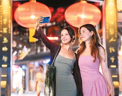 重慶市沙坪壩區(qū)磁器口古鎮(zhèn),來自俄羅斯的游客正在游玩。孫凱芳攝(人民視覺)