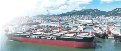 山東省榮成市石島管理區(qū)修造船基地,船塢內(nèi)外停滿了海內(nèi)外各類大型船舶。王福東攝(人民視覺)