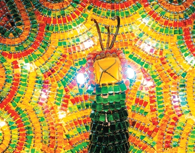 四川自貢是中國首批十三個(gè)國家文化出口基地之一。圖為當(dāng)?shù)刂谱鞯牟薀簟翱兹搁_屏”。新華社記者 張笑宇攝