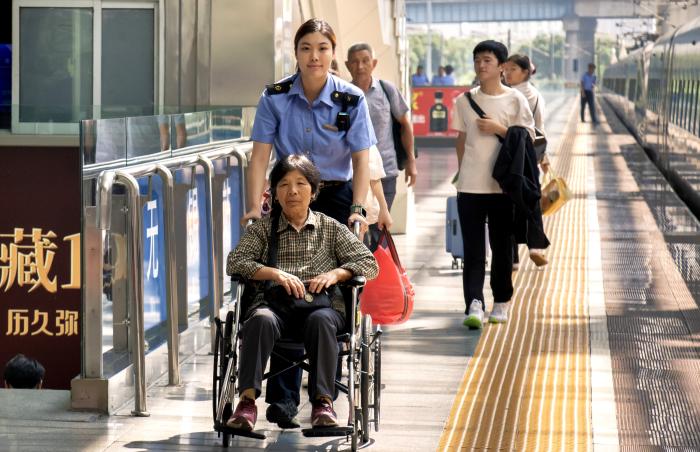 無(wú)錫站"太湖明珠"雷鋒服務(wù)站工作人員為重點(diǎn)旅客出行提供幫扶。張博倫 攝