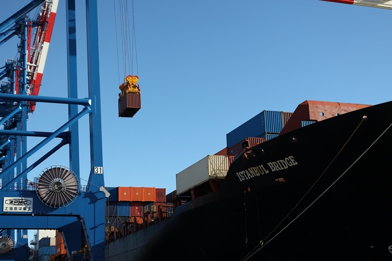 10月19日,在波蘭北部格但斯克港,從中國寧波舟山港出發(fā)的中歐北極快航航線首艘貨船進(jìn)行裝卸工作。