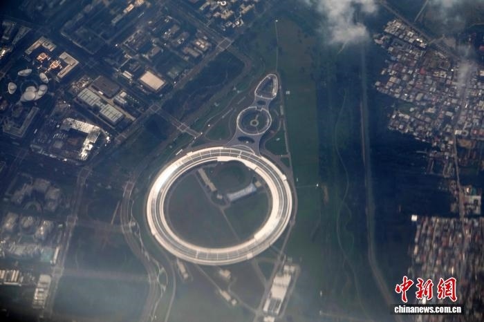 2025年8月30日,客機飛過北京懷柔科學城時,航拍高能同步輻射光源(HEPS)大科學裝置。中新網(wǎng)記者 孫自法 攝