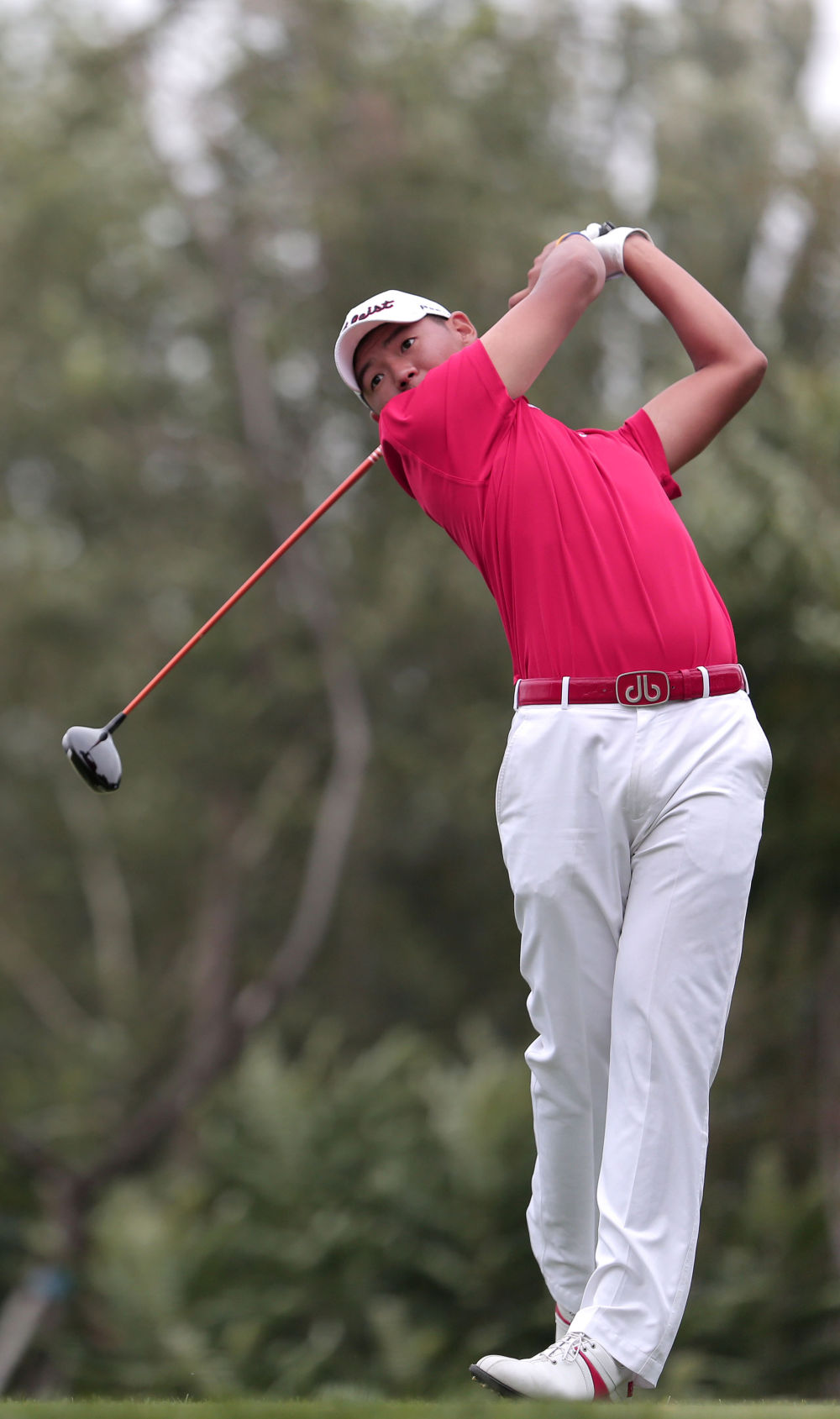 2013年9月9日,香港隊選手黑純一在比賽中。當(dāng)日,在遼寧省沈陽市進(jìn)行的第十二屆全運會高爾夫球男子團(tuán)體比賽中,香港隊最終以851桿的總成績奪得亞軍。新華社記者姚劍鋒攝
