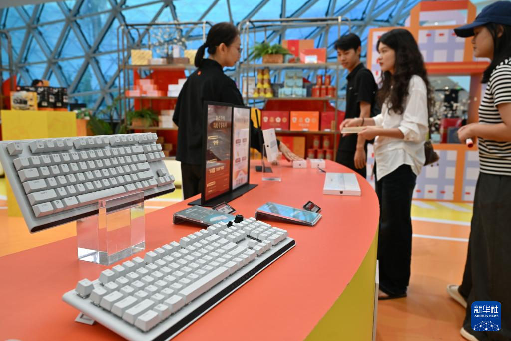 11月9日,顧客在三亞國(guó)際免稅城選購(gòu)數(shù)碼配件。這是新增免稅品類。