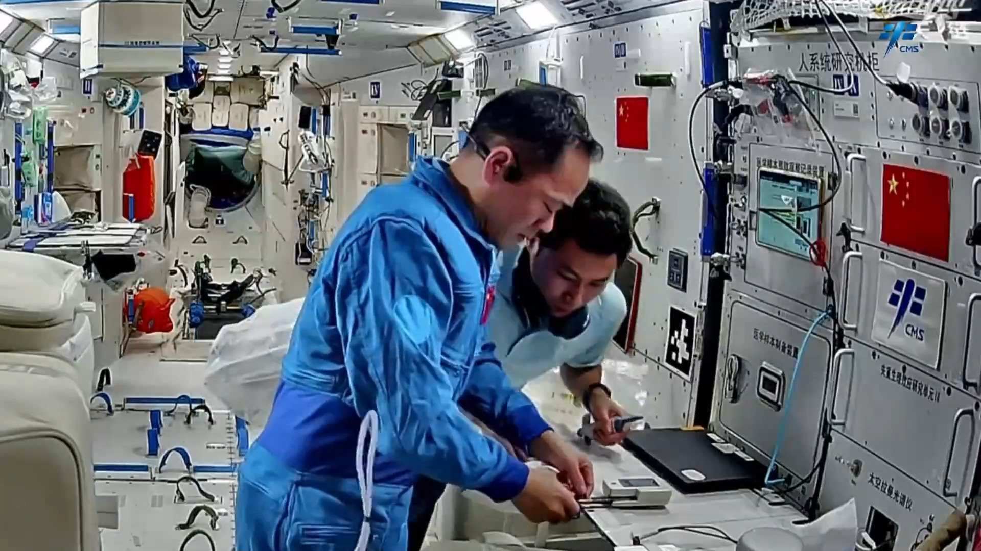 在設(shè)備檢查維護(hù)方面,乘組開展了低溫存儲裝置及-80℃空間冰箱巡視、環(huán)控氣瓶壓力檢查、再生生保系統(tǒng)設(shè)備維護(hù)等工作。