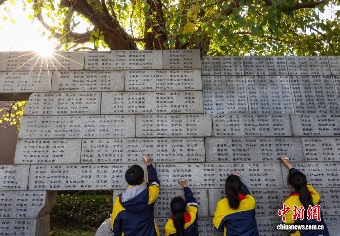 中新社南京11月30日電 (記者 朱曉穎)南京大屠殺死難者家庭祭告活動(dòng)30日在侵華日軍南京大屠殺遇難同胞紀(jì)念館舉行。南京大屠殺幸存者、南京大屠殺歷史記憶傳承人、南京大屠殺遇難同胞遺屬、青少年及志愿者代表等,聚集在南京大屠殺遇難者名單墻(又稱“哭墻”)前,一同祭奠在大屠殺中慘遭殺害的無辜同胞。