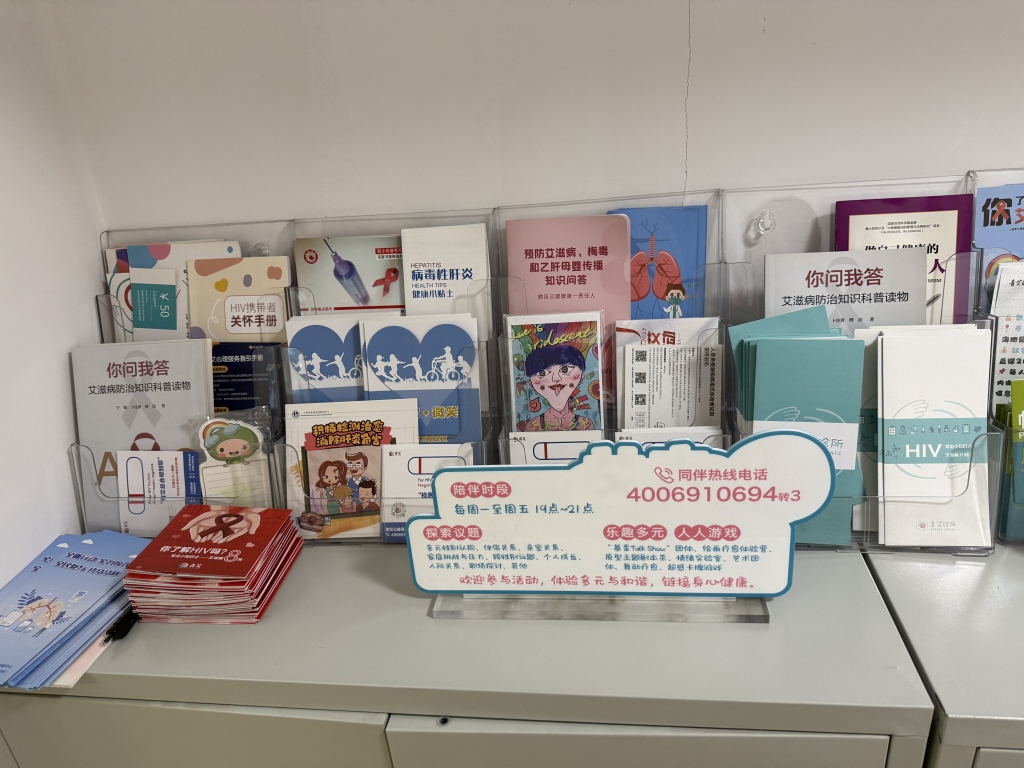 2025年11月27日,上海青艾健康促進(jìn)中心公布咨詢、心理熱線等,給予新發(fā)感染者、穩(wěn)定用藥感染者和晚期艾滋病人不同類型的陪伴服務(wù)。澎湃新聞記者 陳斯斯 圖