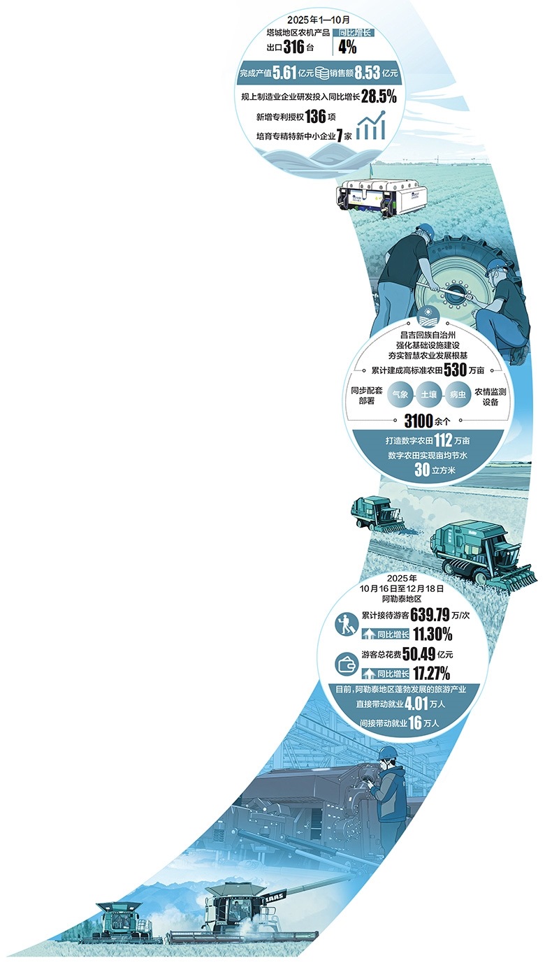 歲末之際,北疆大地處處涌動著蓬勃生機(jī)與創(chuàng)新活力。從智能農(nóng)機(jī)產(chǎn)銷兩旺到數(shù)字農(nóng)田“云端”管理,從冰雪熱潮點(diǎn)燃消費(fèi)新引擎到物流樞紐貫通能源動脈,一幅以“新”為底色的發(fā)展畫卷正徐徐展開。本期北疆觀察版年終盤點(diǎn),聚焦四組生動實踐,看新技術(shù)、新產(chǎn)業(yè)、新模式如何匯聚成新質(zhì)生產(chǎn)力,為區(qū)域高質(zhì)量發(fā)展注入強(qiáng)勁動能。