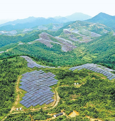 “這里十幾個(gè)山頭的光伏板,光照好的時(shí)候,每天可發(fā)電近20萬千瓦時(shí)?!睆V水市寶林風(fēng)光一體發(fā)電站工作人員騰洪波說,它們與20公里外的風(fēng)力發(fā)電機(jī)產(chǎn)生的綠電,將傳輸?shù)綄毩诛L(fēng)光一體發(fā)電站,再送入主電網(wǎng)。
