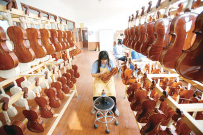 目前,東高村鎮(zhèn)已有五家樂器制造上下游企業(yè),其中華東樂器有限公司更是華北最大的提琴生產(chǎn)企業(yè)。其產(chǎn)品不僅在國(guó)內(nèi)市場(chǎng)占據(jù)重要地位,還遠(yuǎn)銷歐美、東南亞等國(guó)家和地區(qū),出口量占總量的80%以上。