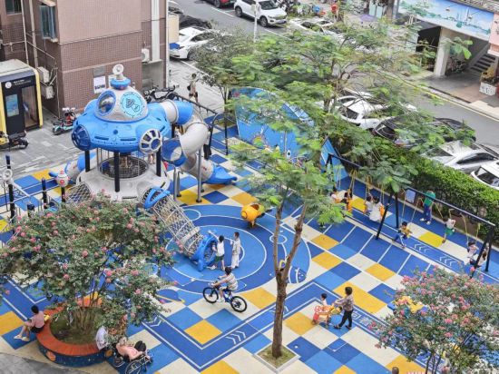 大浪街道水圍新村的適兒化改造,變村為“島”,打造成為全國首個兒童友好城中村,為居住在城中村的孩子們創(chuàng)造更多安全游戲的空間。