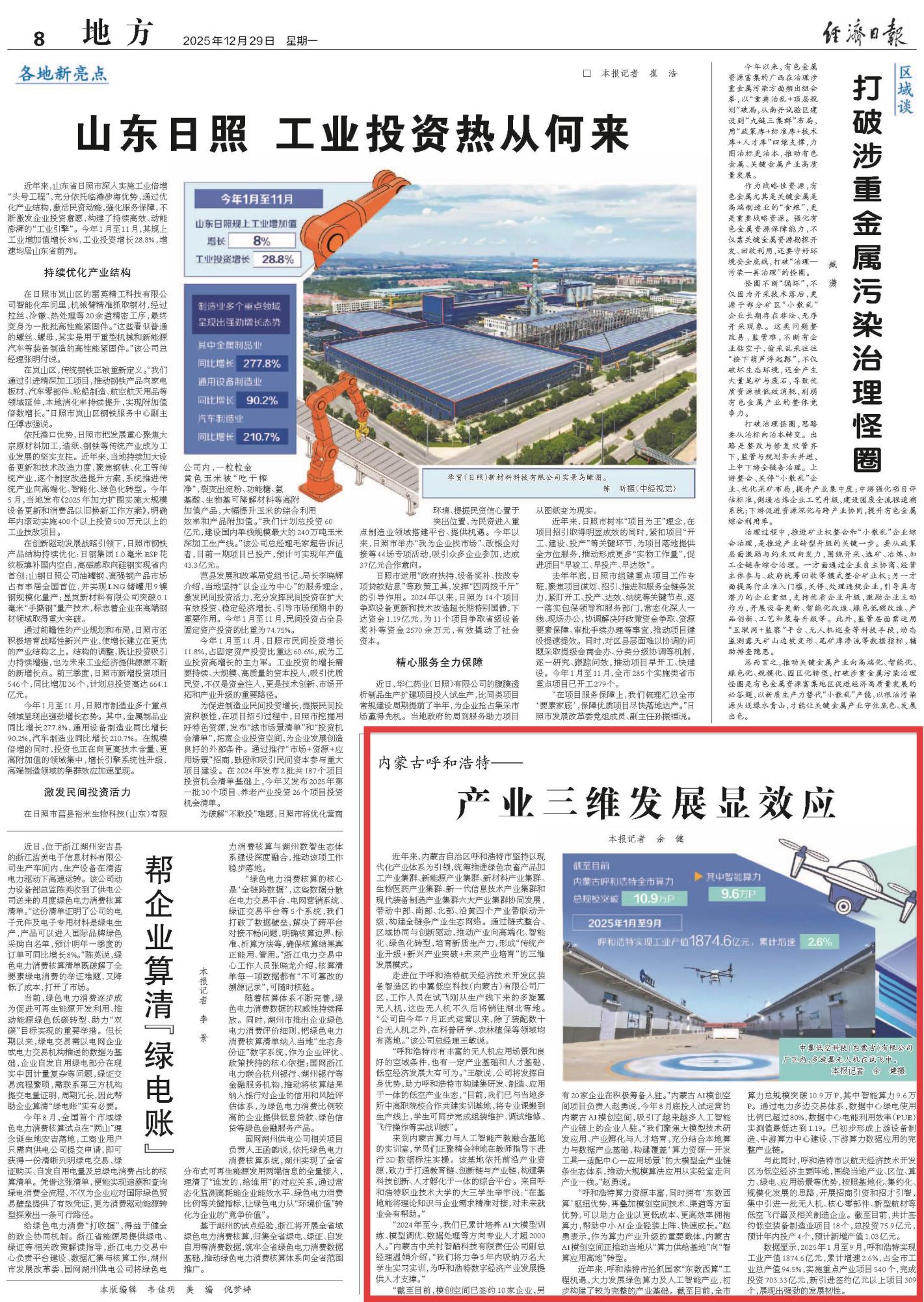 2025年12月29日,《經(jīng)濟日報》第8版刊發(fā)題為《內(nèi)蒙古呼和浩特——產(chǎn)業(yè)三維發(fā)展顯效應(yīng)》的文章,報道了內(nèi)蒙古自治區(qū)呼和浩特市堅持以現(xiàn)代化產(chǎn)業(yè)體系為引領(lǐng),通過鏈?zhǔn)秸?、區(qū)域協(xié)同與創(chuàng)新驅(qū)動,推動產(chǎn)業(yè)向高端化、智能化、綠色化轉(zhuǎn)型,培育新質(zhì)生產(chǎn)力,形成“傳統(tǒng)產(chǎn)業(yè)升級+新興產(chǎn)業(yè)突破+未來產(chǎn)業(yè)培育”的三維發(fā)展模式。
