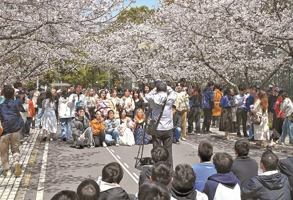 江南三月,草長鶯飛,楊柳拂堤。又是一年春光大好,同濟大學愛校路上又現(xiàn)繁花盛景。櫻花季,大學校園向社會開放的同時,也帶來一個老生常談的話題:是否影響了學生學習,外來游客是否搶占了校園資源?畢竟,很多人賞花時,學生們往往也在上課,花樹就在教室的窗邊,外面的喧嘩聲聽得很真切。更嚴重的是,老師授課時講話的聲音都能被那些嘈雜聲淹沒。