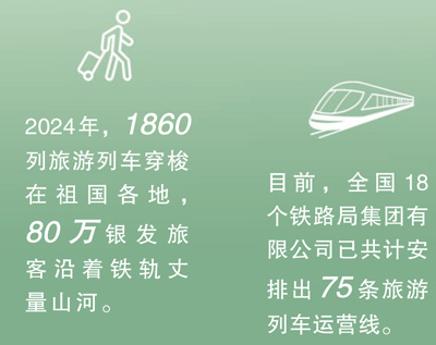 今年2月,商務(wù)部、文化和旅游部、中國國家鐵路集團(tuán)有限公司等9單位聯(lián)合發(fā)布《關(guān)于增開銀發(fā)旅游列車促進(jìn)服務(wù)消費(fèi)發(fā)展的行動計劃》,指出要擴(kuò)容旅游列車線路和產(chǎn)品,豐富銀發(fā)旅游列車產(chǎn)品供給,建立品質(zhì)型、舒適型、普惠型產(chǎn)品體系。目前,全國18個鐵路局集團(tuán)有限公司已共計安排出75條旅游列車運(yùn)營線。一趟趟銀發(fā)列車如春日繁花次第綻放,為老年人鋪就通往詩與遠(yuǎn)方的旅途,更以流動的風(fēng)景線激活沿線文旅消費(fèi),為推動經(jīng)濟(jì)高質(zhì)量發(fā)展注入“銀發(fā)”新動能。