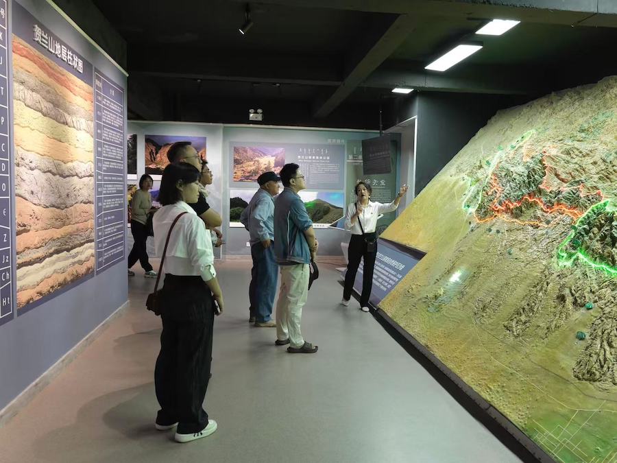 在賀蘭山展覽廳內(nèi),圖文并茂的展板、珍貴的影像資料,生動展現(xiàn)了賀蘭山從自然形成到人文積淀的歷程。一幅幅照片、一件件實物,講述著人與自然和諧共生的故事,讓記者們更加直觀地理解了“綠水青山就是金山銀山”的生動實踐。