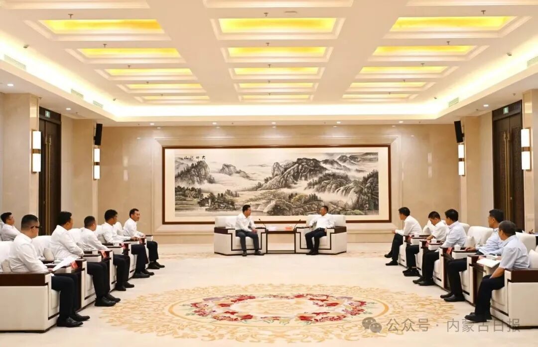 9月11日,自治區(qū)黨委書記孫紹騁在呼和浩特會(huì)見明陽集團(tuán)黨委書記、董事長張傳衛(wèi)。草原云·內(nèi)蒙古新聞網(wǎng)記者 馬建兵 攝