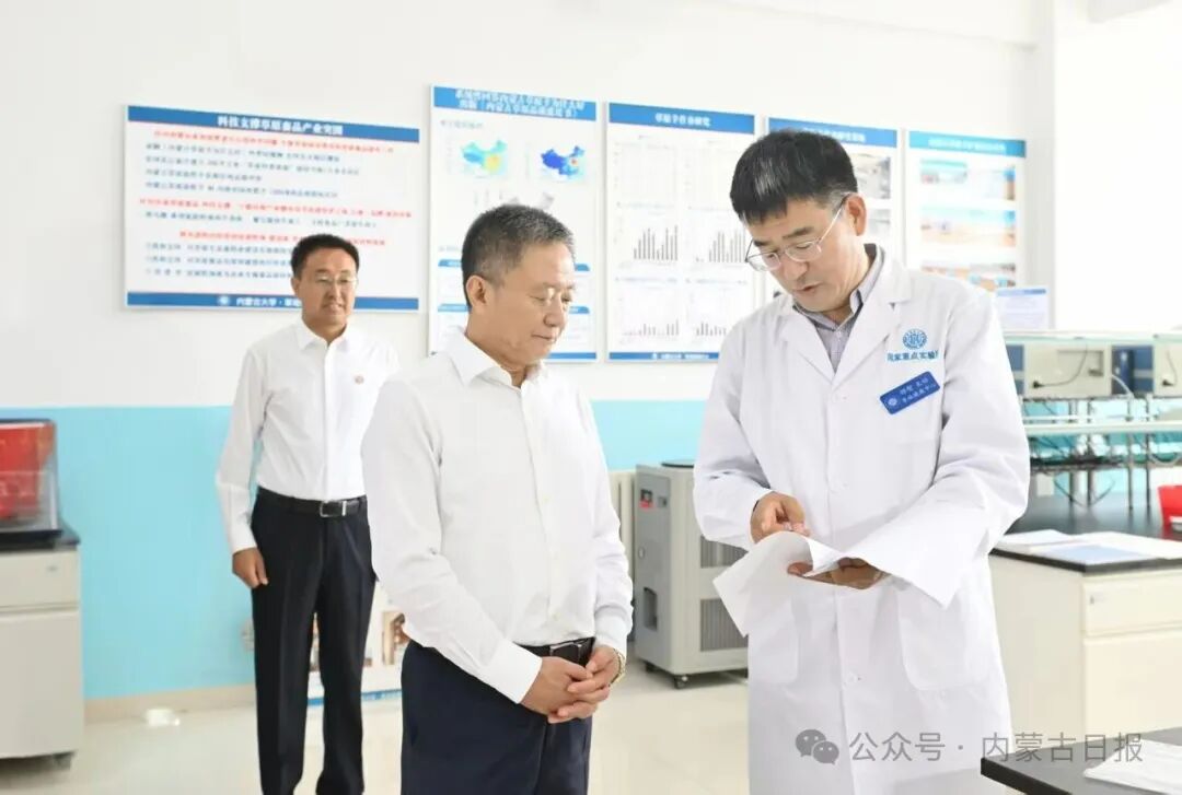 9月8日,自治區(qū)黨委書記孫紹騁在教育部重點實驗室草地健康中心察看羊草培育、鹽堿草原治理等科研成果,聽取探索草原生態(tài)治理低成本路徑、科技支撐草原畜品產(chǎn)業(yè)突圍等情況介紹。草原云·內(nèi)蒙古新聞網(wǎng)記者 馬建兵 攝