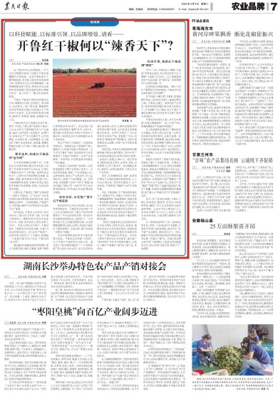 2025年9月9日,《農(nóng)民日報》第7版刊發(fā)題為《以科技賦能、以標準引領、以品牌增效,請看——開魯紅干椒何以“辣香天下”?》的文章,報道了內(nèi)蒙古開魯縣用“標準”這把金鑰匙,成功開啟了紅干椒產(chǎn)業(yè)品牌化、國際化的大門。未來,隨著對不同品種標準化體系的持續(xù)創(chuàng)建和完善,“開魯紅干椒”這一區(qū)域公用品牌必將在更廣闊的舞臺上綻放出更加璀璨的光芒,真正實現(xiàn)“紅映開魯,辣香天下”的愿景。