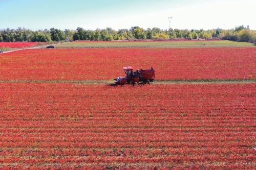 圖為開魯縣東風鎮(zhèn)辣椒種植基地進行機收作業(yè)的情景。張芮嘉 攝