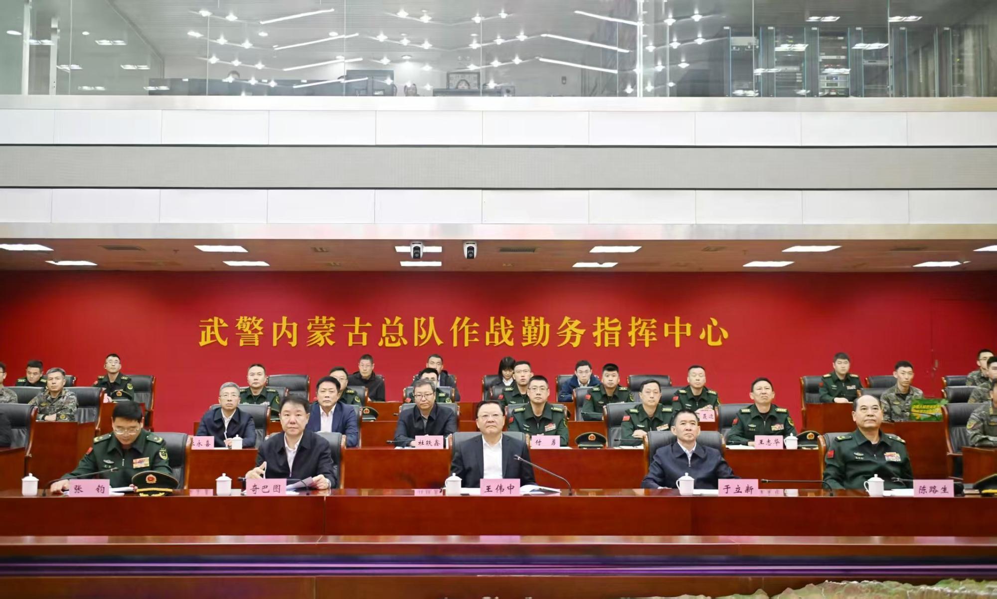 在武警內(nèi)蒙古總隊,王偉中來到作戰(zhàn)勤務指揮中心,仔細聽取部隊建設和指揮中心運行情況介紹。他指出,武警內(nèi)蒙古總隊是一支有著光榮歷史的英雄部隊,希望部隊繼續(xù)關心支持自治區(qū)經(jīng)濟社會發(fā)展,加強練兵備戰(zhàn),做好應急準備,當好內(nèi)蒙古高質(zhì)量發(fā)展和長治久安的堅強基石、忠誠衛(wèi)士,為全區(qū)社會大局穩(wěn)定和人民群眾安居樂業(yè)保駕護航。