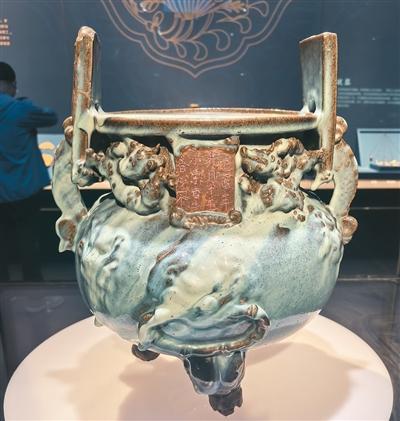 元代鈞窯“小宋自造”香爐。人民日?qǐng)?bào)記者 張 棖攝