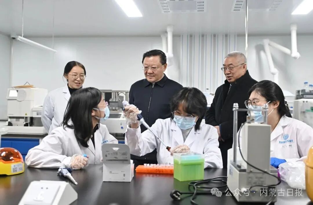 12月16日,自治區(qū)黨委書(shū)記王偉中來(lái)到畜牧研究所實(shí)驗(yàn)室,認(rèn)真了解科研平臺(tái)建設(shè)、技術(shù)攻關(guān)進(jìn)展。草原云·內(nèi)蒙古新聞網(wǎng)記者 馬建兵 攝