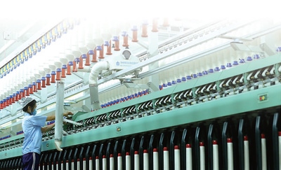 圖為青島即發(fā)盛寶紡織有限公司紡織智能生產線正在生產高端纖維。梁孝鵬攝(新華社發(fā))