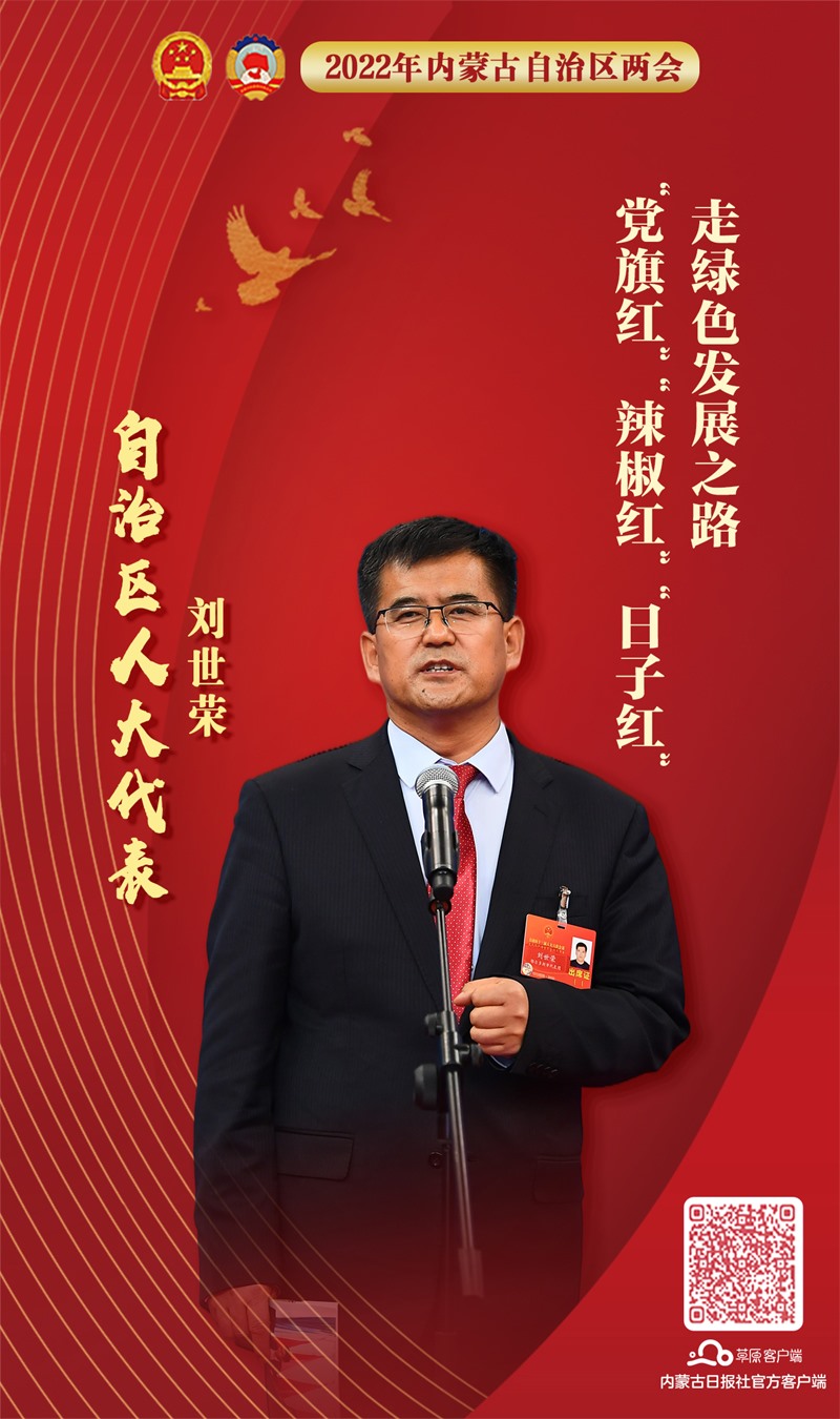 從昔日的沙窩窩到成為如今遠(yuǎn)近聞名的美麗鄉(xiāng)村,自治區(qū)人大代表、鄂爾多斯市達(dá)拉特旗展旦召蘇木道勞村黨支部書記、村委會主任劉世榮和大家分享了23年來,道勞村是怎樣推動農(nóng)畜產(chǎn)品生產(chǎn)基地優(yōu)質(zhì)高效轉(zhuǎn)型,走出一條符合道勞實際的綠色發(fā)展之路的。他用“三個紅、一個綠”描述了今天的道勞村,即“黨旗紅”“辣椒紅”“日子紅”,走綠色發(fā)展之路。